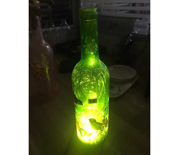 蒙砂酒瓶是在制品玻璃上,粘附一定大小面積的玻璃色釉粉,玻璃瓶廠經(jīng)過580~600℃的高溫烘烤,使玻璃色釉涂層凝結(jié)在玻璃外表,并顯現(xiàn)出具有與玻璃主體不同顏色的一種裝飾辦法。粘附玻璃色釉粉,可用排筆涂刷,亦可用膠輥滾涂。經(jīng)過絲印加工,能夠得到蒙砂面的樓空圖案。 其辦法是:在玻璃制品外表上,絲印一層由阻熔劑構(gòu)成的圖案紋樣。